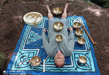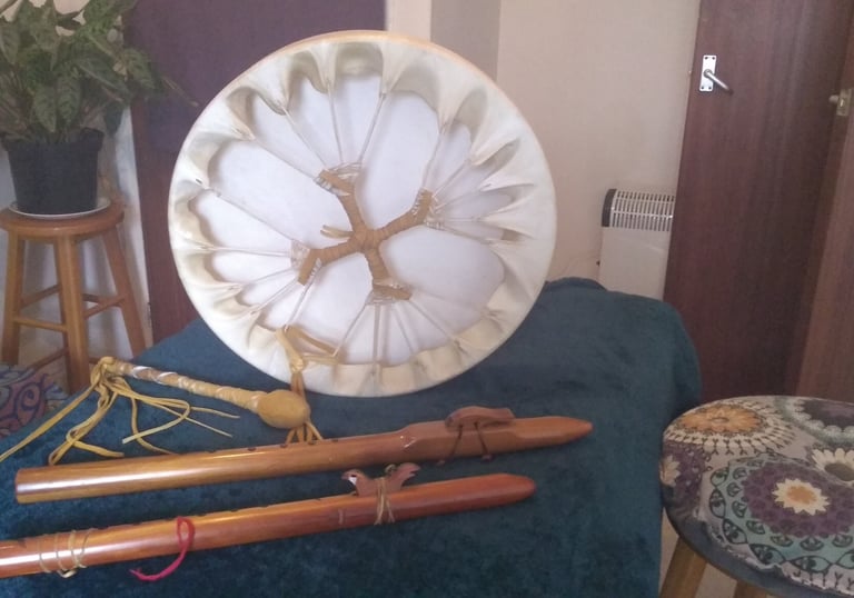Sound journeys are immersive experiences using ancestral songs and healing frequencies for inner healing. Andrew uses drums, voice, shruti, tibetan bowls and crystal singing bowls as well as flute.